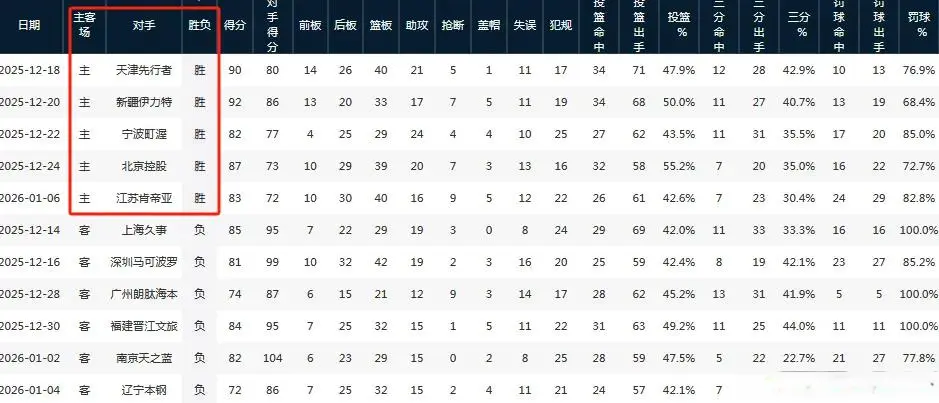 主场一波5连胜当中,分别击败了天津,新疆,宁波,北控,江苏。其中,新疆,北控,宁波都是阵容配置不逊色吉林,甚至稍微占优的球队,但吉林的主场仿佛是有各方面的加持,决战时刻均能顺利收下比赛的胜利。